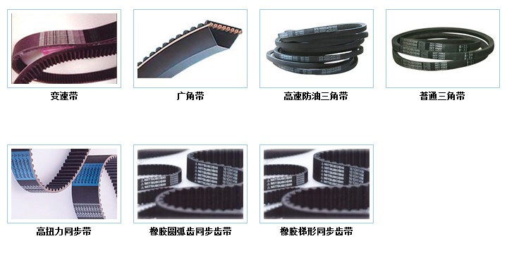 三星橡胶同步齿轮带(MXL、XL、L、H、XH、XXH)、三星圆弧形(HTD)、三星同步齿带、三星双面齿同步带、三星聚氨脂同步齿带(T2.5、T5、T10、 AT5、AT10、DT5、DT10)、三星三角带(A、B、C、M、K、SPZ、SPA、SPB、 SPC、3V、5V、8V带)、三星有齿三角带、三星广角带、三星橡胶多沟带、三星变 速带、三星无缝平皮带等
